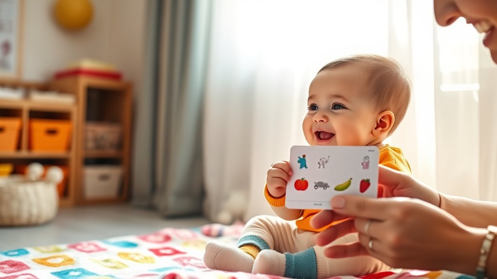 To teach your baby two languages from birth, consistently expose them to both through daily activities like reading, singing, and conversations. Use clear cues to differentiate each language and encourage natural code switching to build their confidence. Keep the environment comfortable and avoid pressuring them for perfect fluency. Focus on balanced interactions, celebrate progress, and be patient. The more you practice and engage, the stronger their bilingual skills will become—continue to explore ways to support their growth.